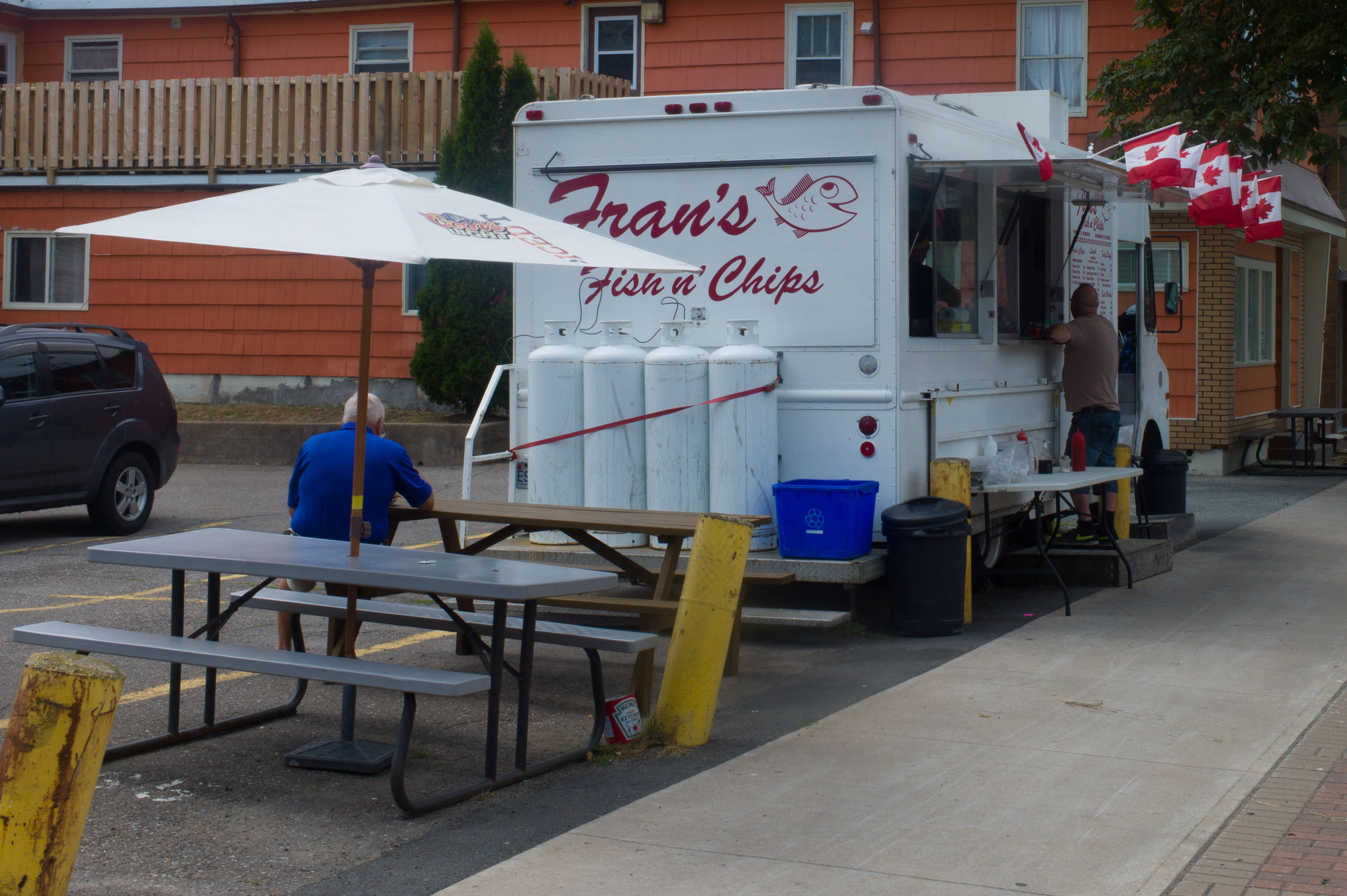 Auf der Fähre. Sonnendeck. Ein großer Typ, Handwerkerklamotten, blau und rot lackierte Fingernägel, begrüßt uns mit heiserer Stimme. Woher wir kommen? Hamburg, Germany, die Standardantwort. Der Typ wirkt anstrengend. Ob wir hier auf Ferienreise wären? Hinter uns die feste Stimme einer älteren Frau: Ich bin in Deutschland geboren. Wir drehen uns um. Das wettergegerbte Gesicht der älteren Lady ist sympathisch. Mit 12 Jahren sei sie ausgewandert, zuerst nach British Columbia und seit 5 Jahren sei sie in Halifax. Tolle Stadt, die zurzeit gewaltig wachse. Aber sie möge es hier. Als wir erklären, dass wir quer durch Kanada reisen wollen, findet sie das interessant. Genau wie ein dritter Typ mittleren Alters, der ebenfalls auf dem Sonnendeck sitzt und sich nach den Details unserer Reise erkundigt. Wir bekommen noch ein paar Tipps zu beautiful places und Ermahnungen, wie weit, leer und gleichförmig Kanada sein könne. Die Fähre legt an, wir bekommen die Hand geschüttelt und jeder geht seiner Wege. So unaufgeregt kann Kommunikation sein.