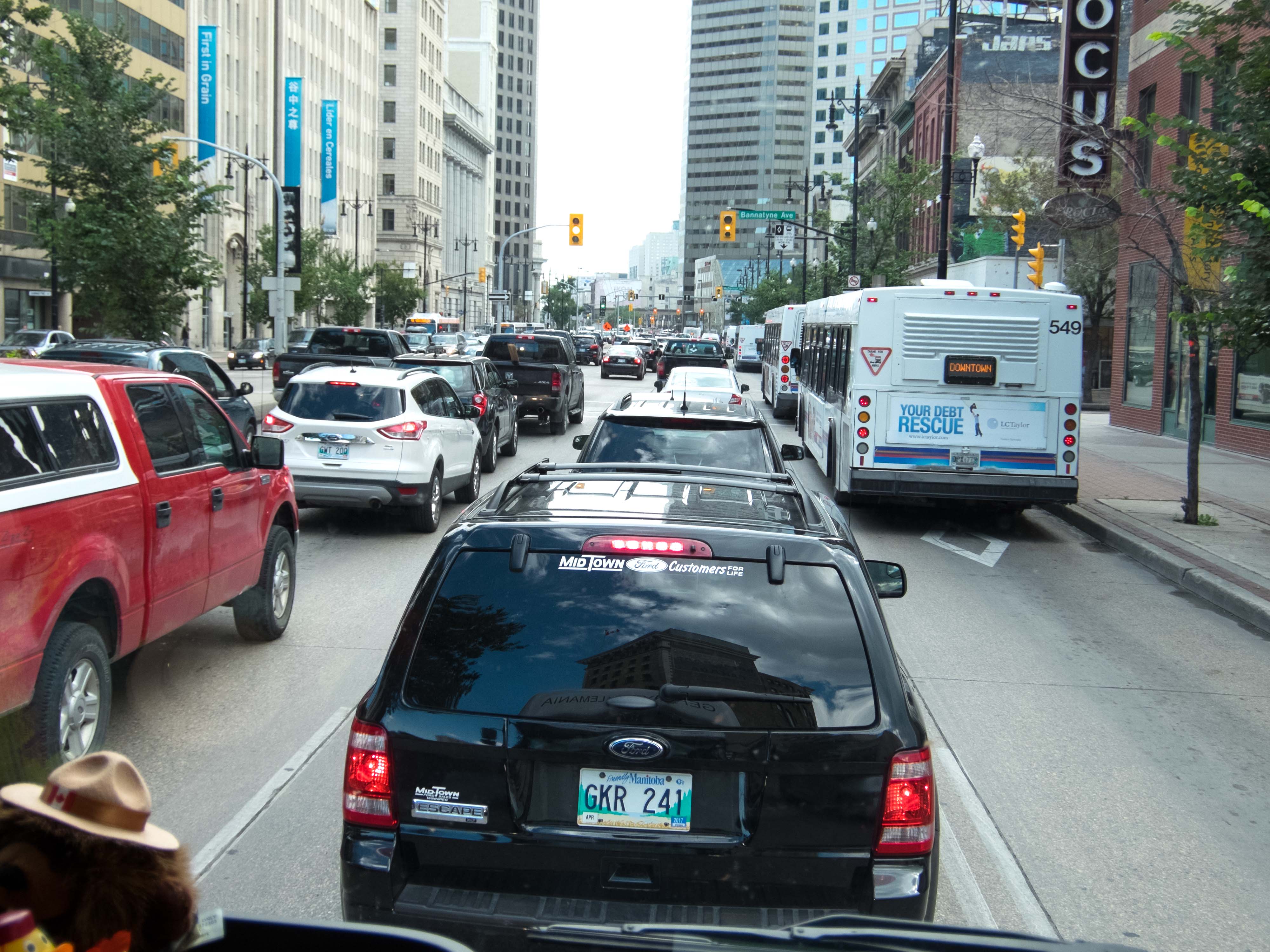 Die Landschaft verändert sich ziemlich schnell und man durchfährt weite Felder mit Raps, Sonnenblumen, Kartoffeln und Weizen. Beim Tanken kurz vor Winnipeg und auf der Hälfte unserer Kanadadurchquerung wurden wir von zwei Deutschen angesprochen, die aus Paderborn stammten und seit fünf Jahren in Manitoba lebten. Kurzer Schnack, gute Reise und nun nach Winnipeg.